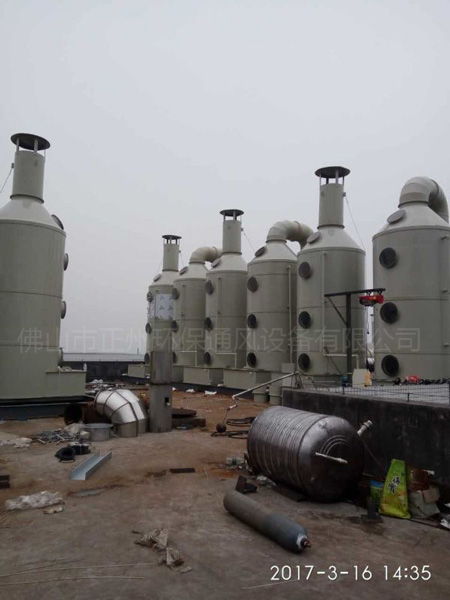 佛(fó)山91九色蝌蚪環保在觀察現場的過程中發現該廠已原有部分(fèn)通風設(shè)備,不過沒有達到環(huán)保要求。在原有的基(jī)礎上,91九色蝌蚪方重新設計了處理方案,采用多(duō)個噴淋塔除塵除臭的方法進行處理,這樣的好處是可以將飼料廠多種(zhǒng)混合(hé)的粉塵、臭味氣體綜合處理。同時可以降(jiàng)低運行的成本(běn)。其基本(běn)流程為:廢氣收集——風機——化學噴淋吸收——噴淋淨化——排放。其設計為每個車間作為一個單元(yuán)來處理(lǐ),共5個處理單元。設計風量按照每個車(chē)間的情況不同進行設計(jì)。
